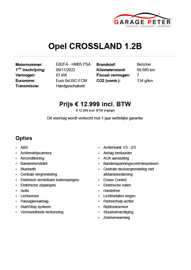Opel CROSSLAND 1200 BENZINE tweedehandswagens garage peter bredene oostende (1)